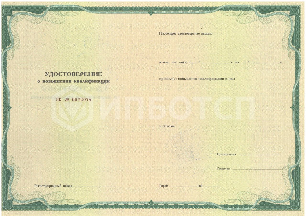 - Удостоверение о повышении квалификации;
