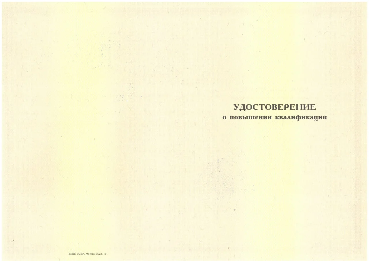 - Удостоверение о повышении квалификации;